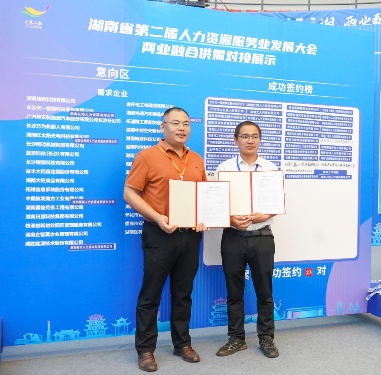 在大会上,资江人力与拓浦精工智能制造(邵阳)有限公司就人力资源服务合作达成协议并现场签约,标志着双方在人才培养,用工保障、人力资源优化配置等方面建立起长期稳定的战略合作关系,将为本地制造业企业提供更加专业化、精准化的人力资源支持。