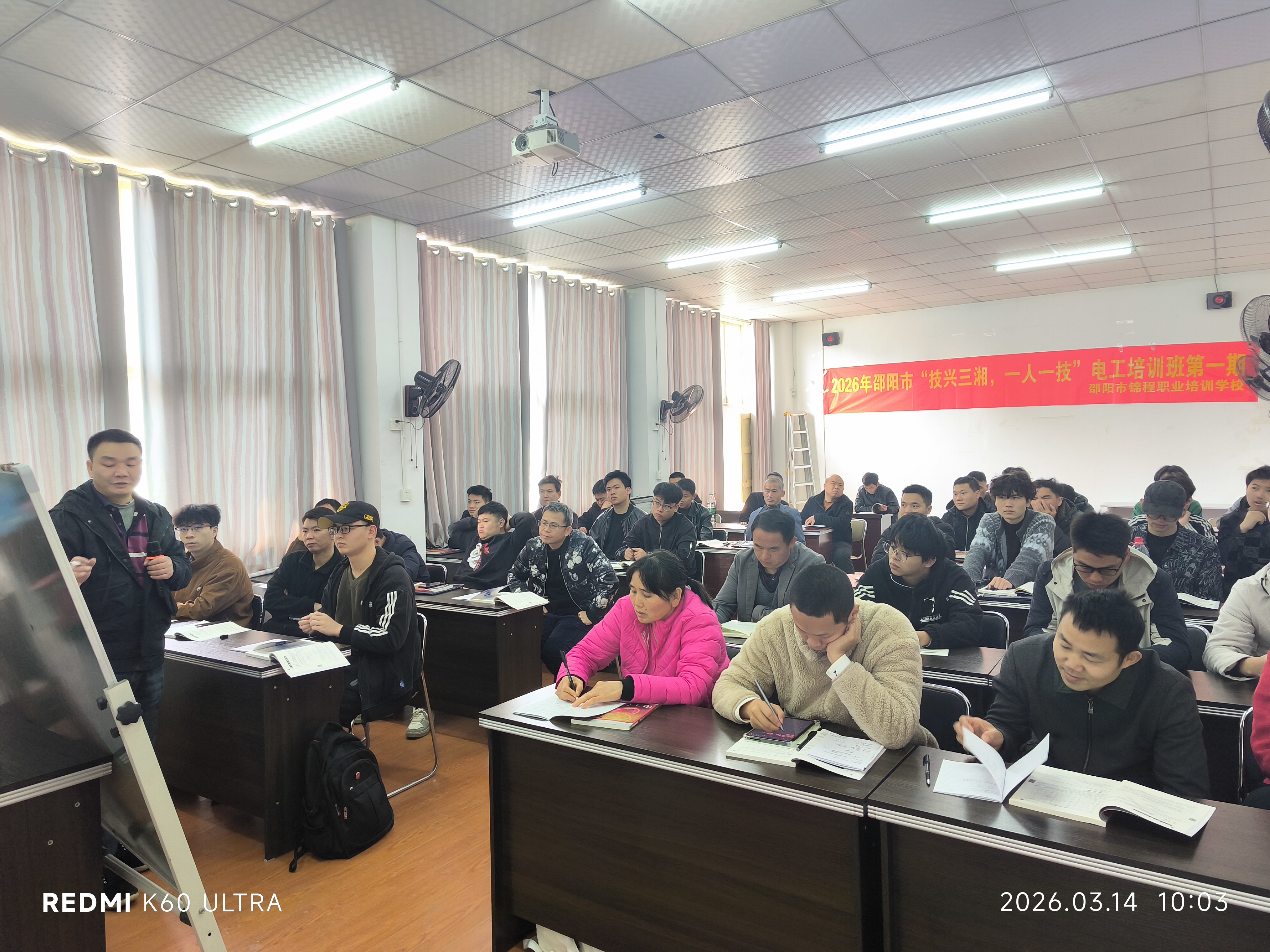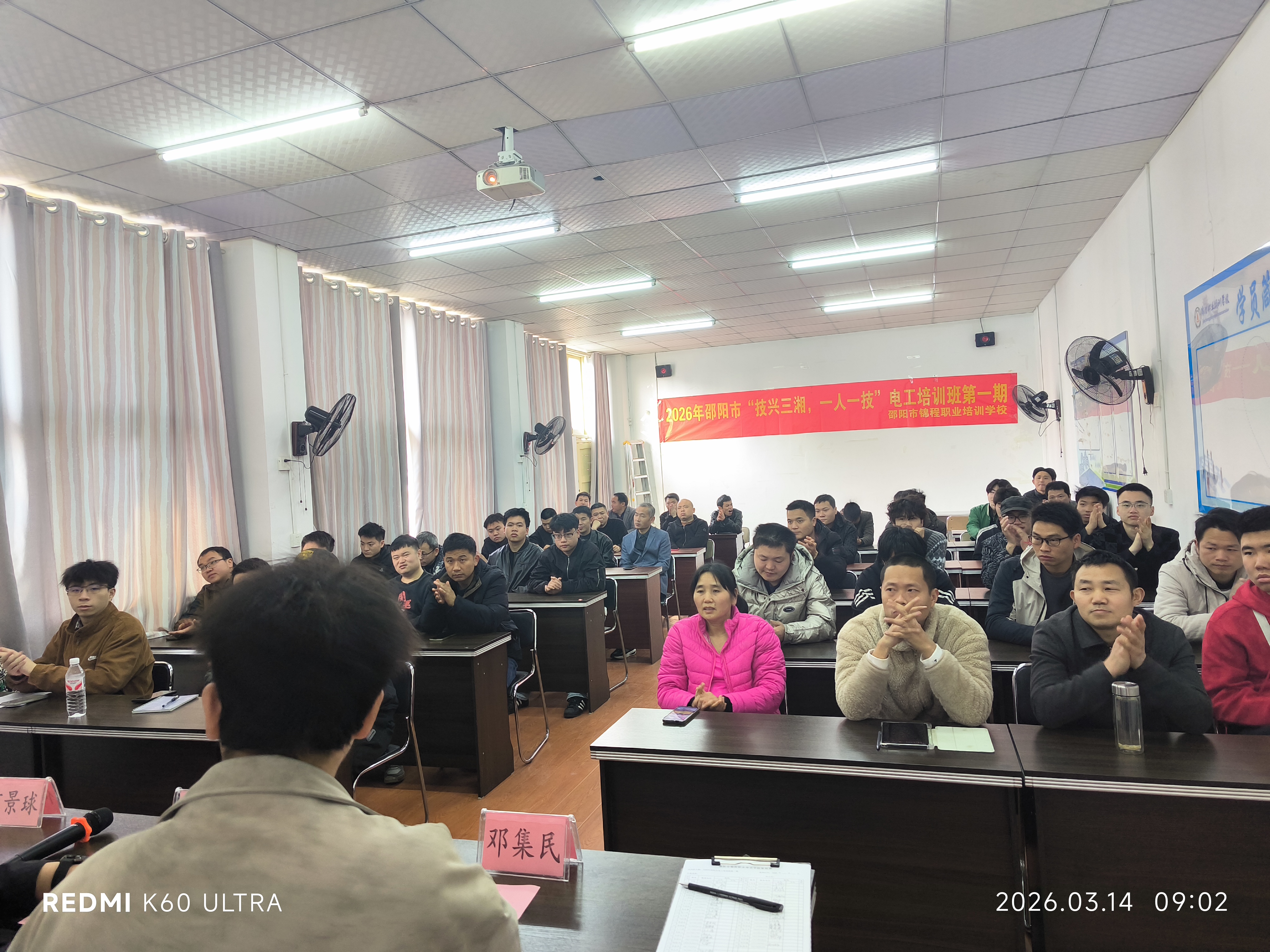为落实湖南省“技兴三湘,一人一技”职业技能提升行动,做强邵阳市“宝庆电工”劳务品牌,由邵阳市人力资源和社会保障局主办、我校承办的2026年全市第一期电工培训班于3月14日正式开班。