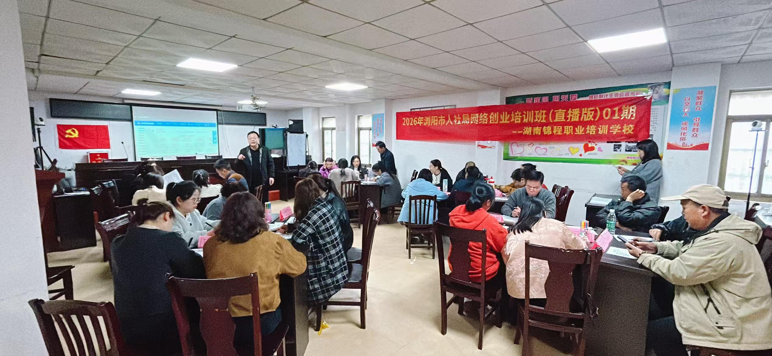 为深入贯彻落实《"技兴三湘 一人一技"职业培训计划实施方案》(湘政办发〔2026〕17号)精神。湖南锦程职业培训学校一直在行动。3月24日,2026年浏阳市网络创业直播培训班第一期在澄潭江槐树村委会正式开班。